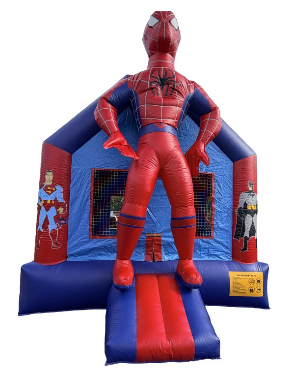 Bring BIG excitement to your next party with our Super Hero Bounce House, featuring a towering hero figure standing right on top of the inflatable! Bold red and blue colors and hero-themed artwork on the sides make this jumper a show-stopping centerpiece for birthday parties, school events, community gatherings, and backyard celebrations. Kids will love stepping into their own action-packed adventure as they jump and play inside this eye-catching inflatable.