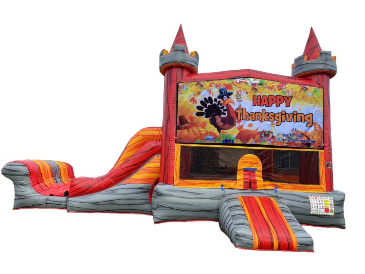 Celebrate the season of gratitude with our Thanksgiving Combo Jumper, a bright and cheerful inflatable that brings fall fun to any event! Featuring a bold “Happy Thanksgiving” banner with a festive turkey and colorful autumn leaves, this combo is the perfect centerpiece for family gatherings, school harvest festivals, church events, and backyard parties. Kids will love jumping, climbing, and sliding while adults enjoy a picture-perfect setup that captures the holiday spirit.