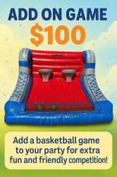 Families and organizations across Rialto, San Bernardino, Fontana, Rancho Cucamonga, Ontario, Riverside, Redlands, Colton, Bloomington, Highland, and surrounding Inland Empire cities love renting this inflatable basketball game for birthdays, school festivals, and church events.