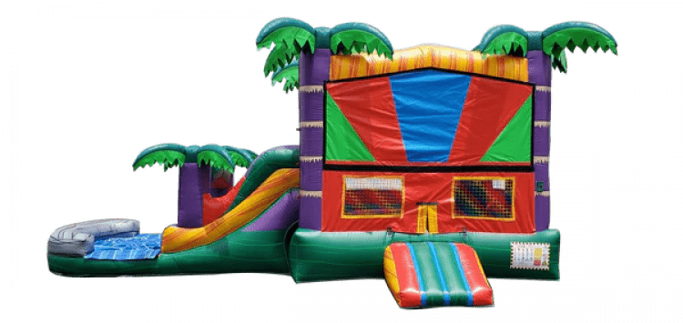 Turn your party into a tropical celebration with the Tropical Fiesta Wet Combo! Featuring palm trees, bright fiesta colors, and a refreshing splash pool, this inflatable is the ultimate summer vibe. Kids can bounce, climb, shoot hoops, and slide all in one exciting unit — guaranteed to keep the fun going all day long!